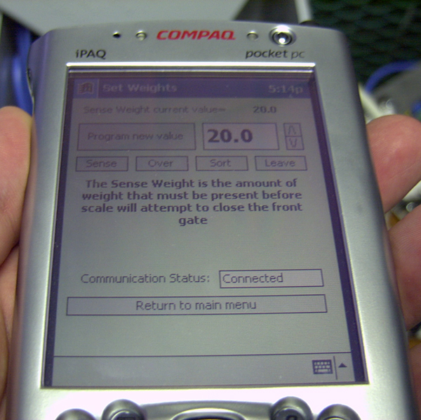 All of the weight scale parameters as well as 24 hour statistics are read and written by transferring data across an infrared light beam using a standard WinCE or PalmPilot.